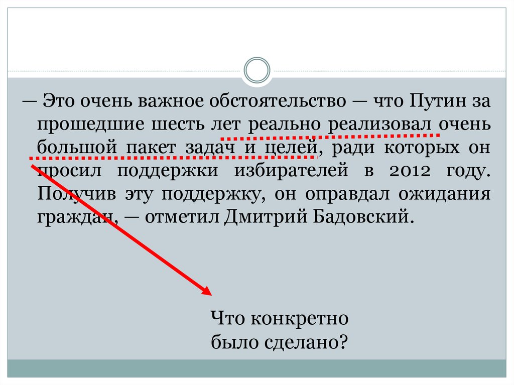 — Это очень важное обстоятельство — что Путин запрошедшие шесть лет реально реализовал очень
