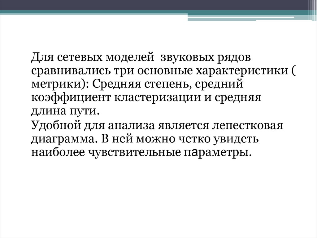 Для сетевых моделей звуковых рядовсравнивались три основные характеристики (