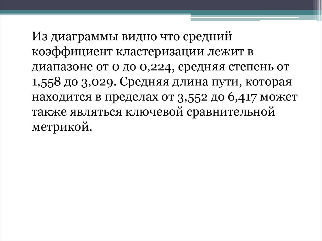 Из диаграммы видно что среднийкоэффициент кластеризации лежит в