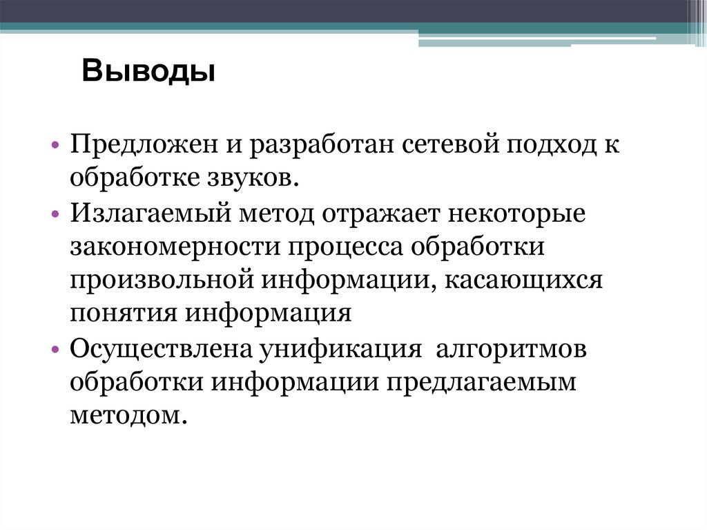 Выводы• Предложен и разработан сетевой подход к