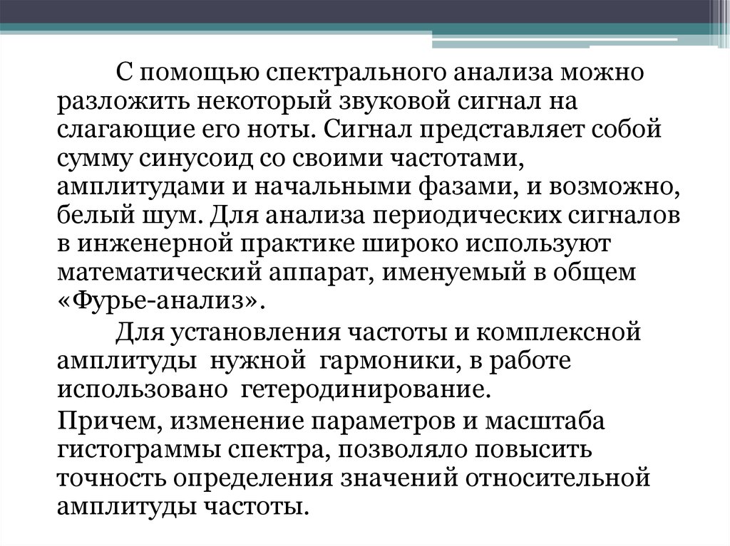 С помощью спектрального анализа можноразложить некоторый звуковой сигнал на