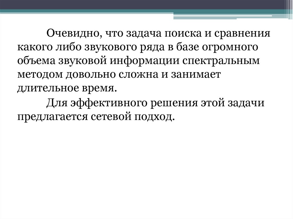 Очевидно, что задача поиска и сравнениякакого либо звукового ряда в базе огромного