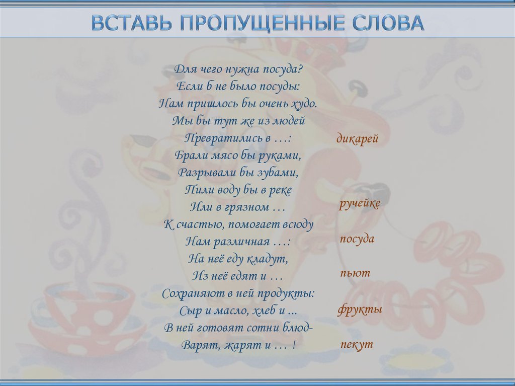 Для чего нужна посуда?Если б не было посуды: