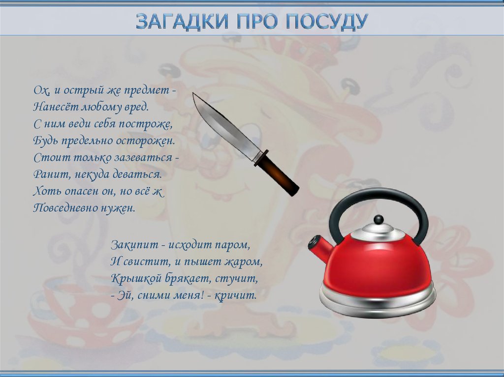 Ох, и острый же предмет Нанесёт любому вред.С ним веди себя построже,