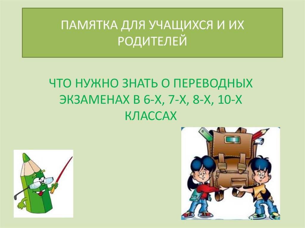 Памятка для учащихся и их родителей. Что нужно знать о переводных экзаменах в 6-х, 7-х, 8-х, 10-х классах