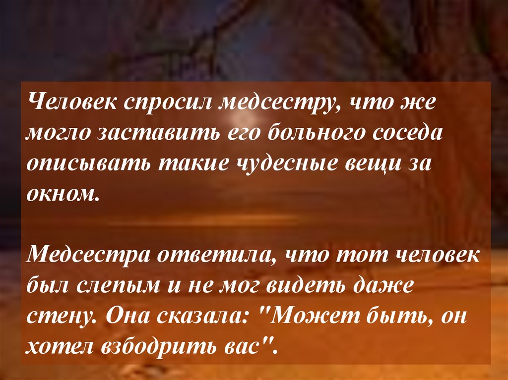 Человек спросил медсестру, что жемогло заставить его больного соседа