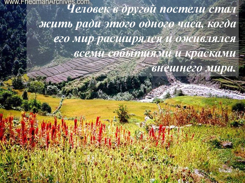 После обеда, когда человек в кровати уокна мог сидеть, он всё время