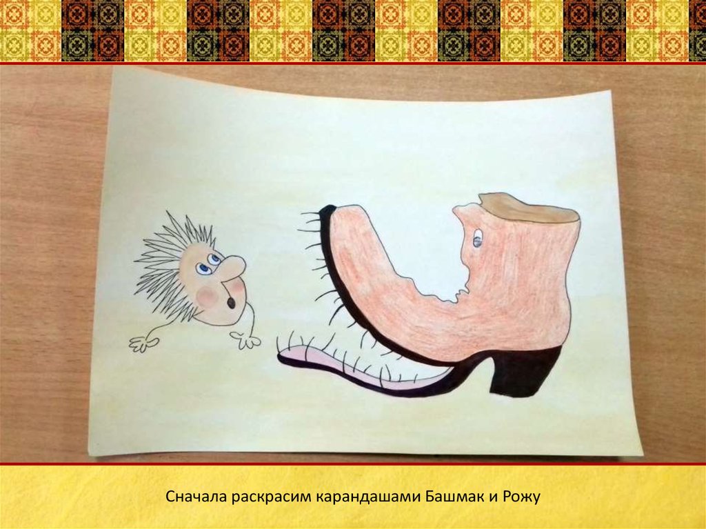 Сначала раскрасим карандашами Башмак и Рожу8.