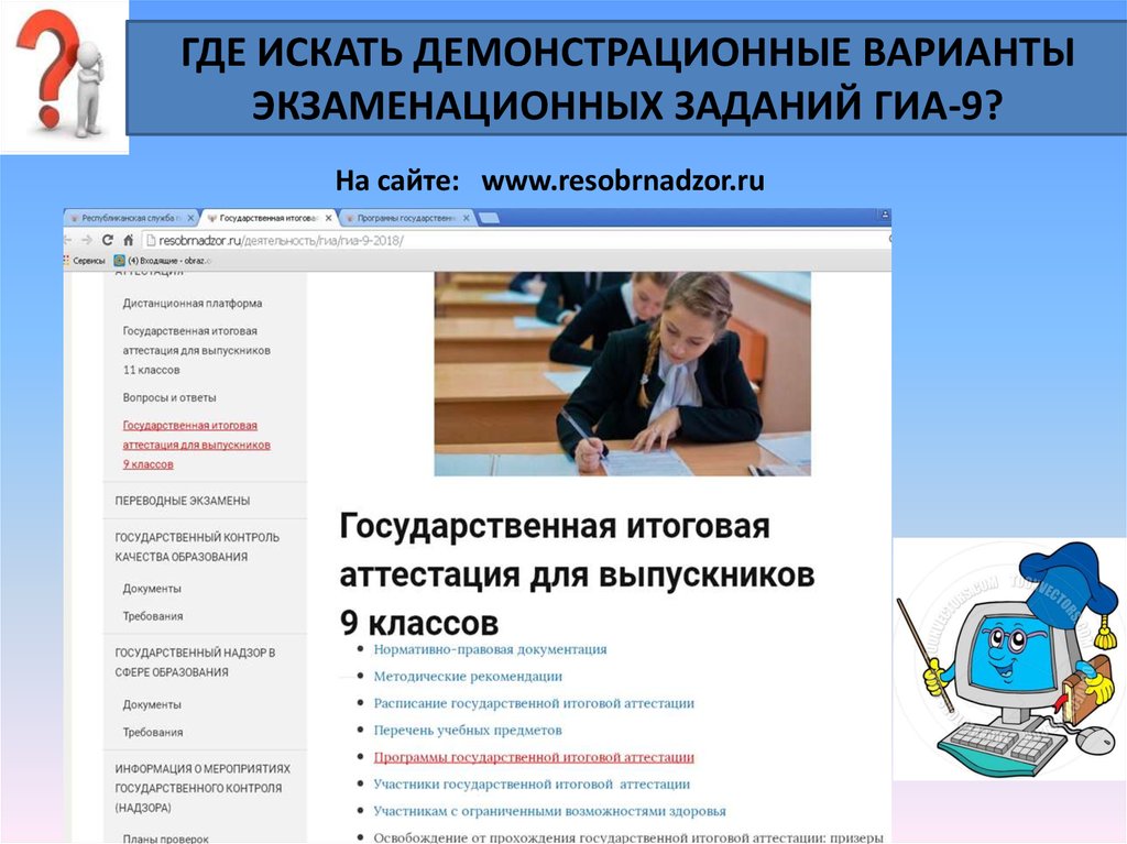 ГДЕ ИСКАТЬ ДЕМОНСТРАЦИОННЫЕ ВАРИАНТЫЭКЗАМЕНАЦИОННЫХ ЗАДАНИЙ ГИА-9?