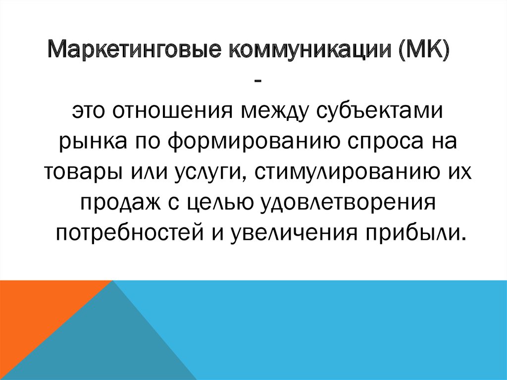 Маркетинговые коммуникации (МК)это отношения между субъектами