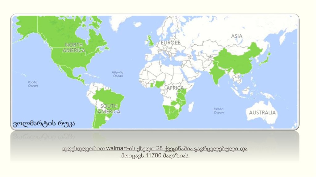 დღესდღეობით walmart-ის ქსელი 28 ქვეყანაშია გავრცელებული დამოიცავს 11700 მაღაზიას