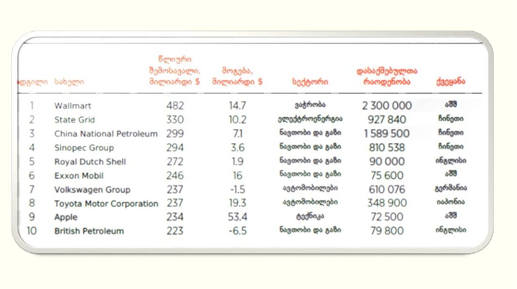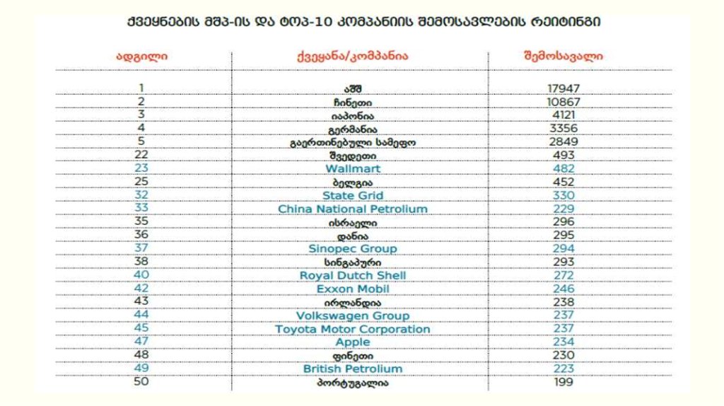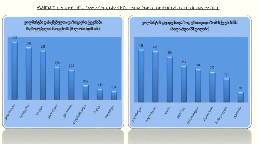 Walmart ლიდერობს, როგორც დასაქმებულთა რაოდენობით ასევე შემოსავლებით9.