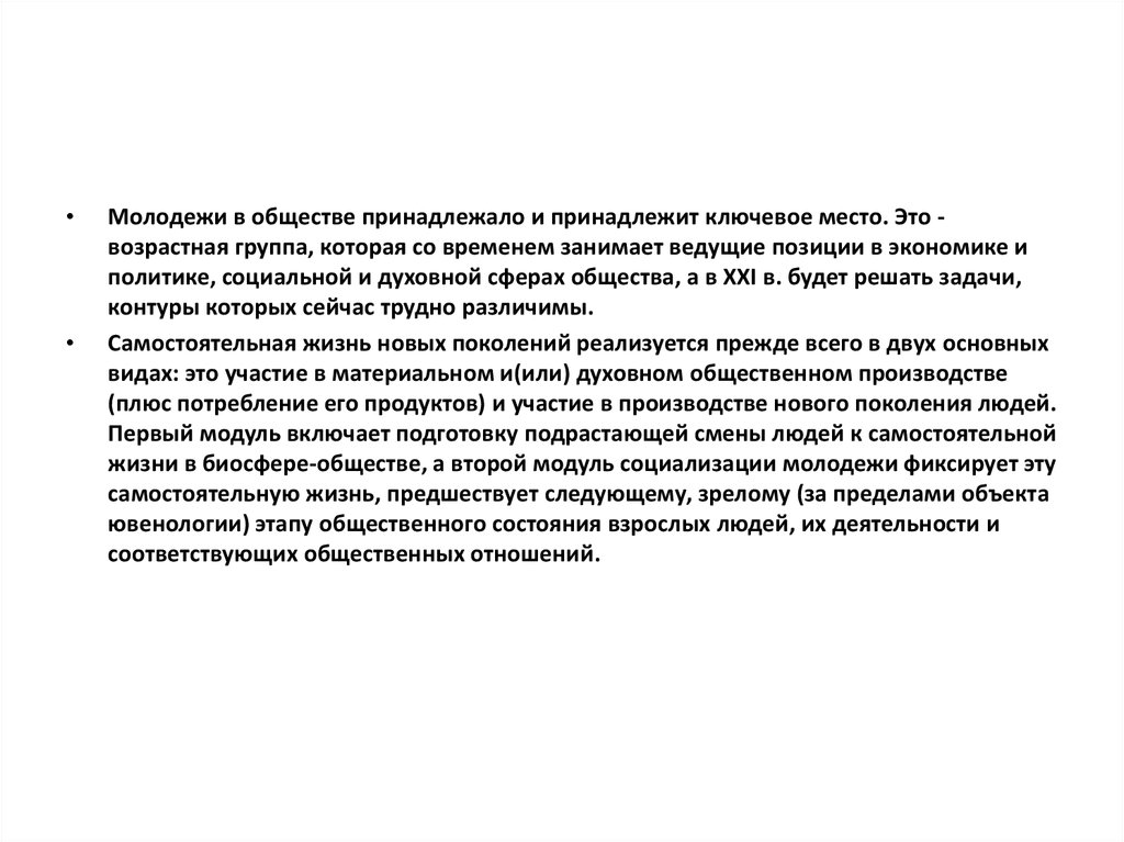 Молодежи в обществе принадлежало и принадлежит ключевое место. Это возрастная группа, которая со временем занимает ведущие позиции в экономике и