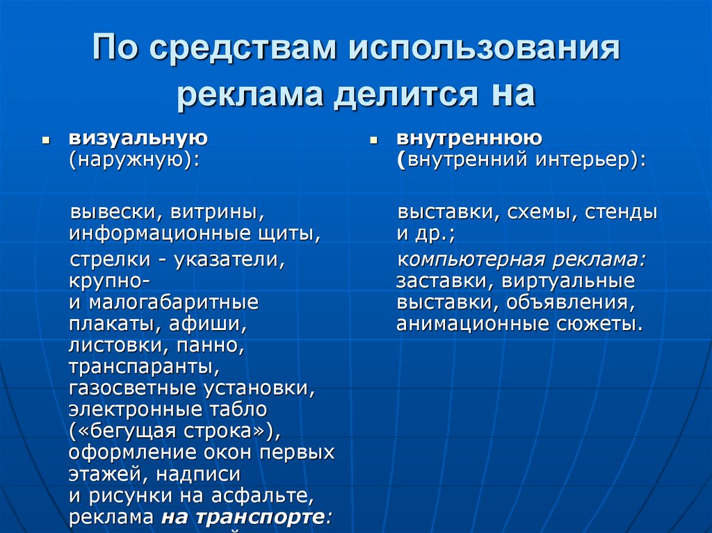 Средства рекламыобъявления, радио, теле-кино-клипы,