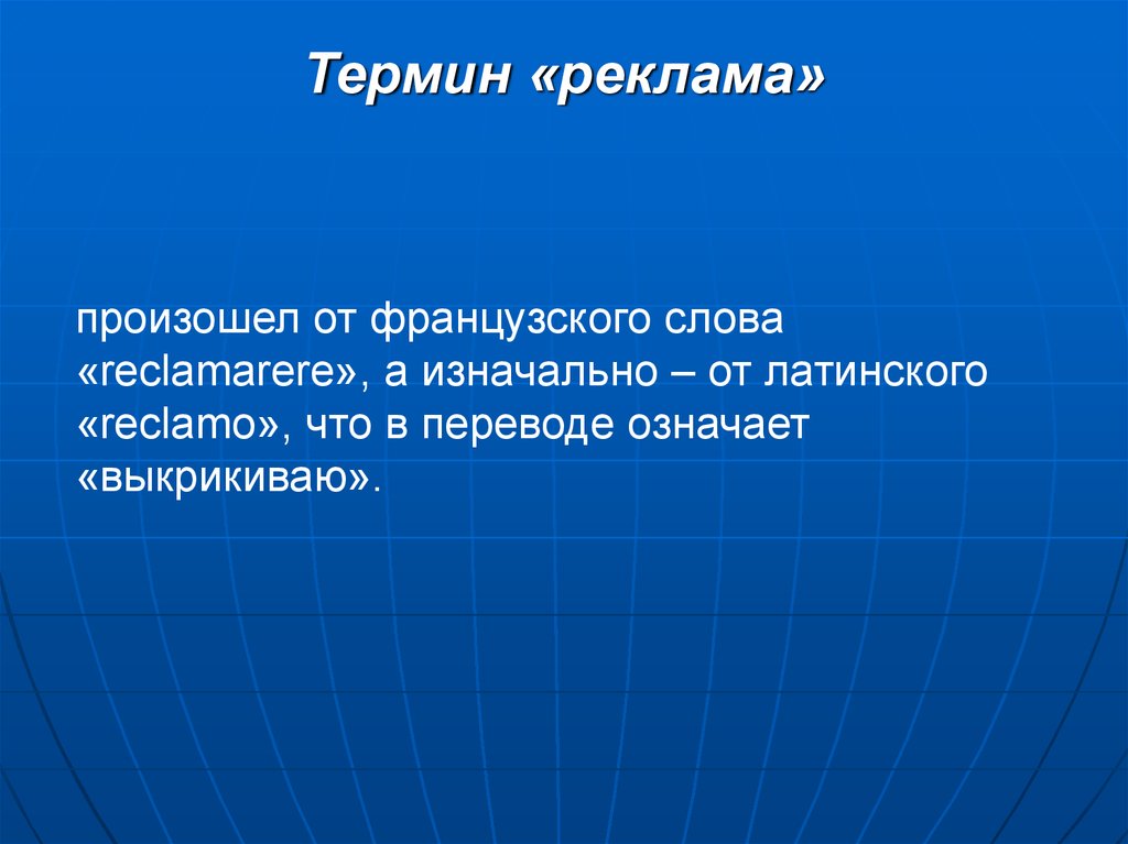 Термин «реклама»произошел от французского слова