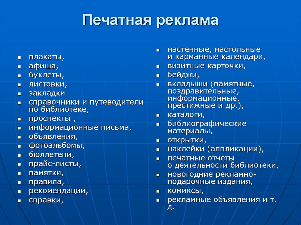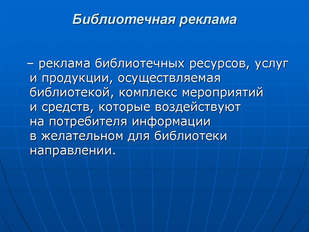 Библиотечная реклама– реклама библиотечных ресурсов, услуг