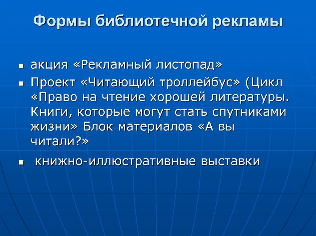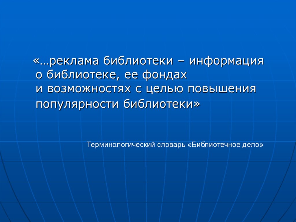 «…реклама библиотеки – информацияо библиотеке, ее фондах