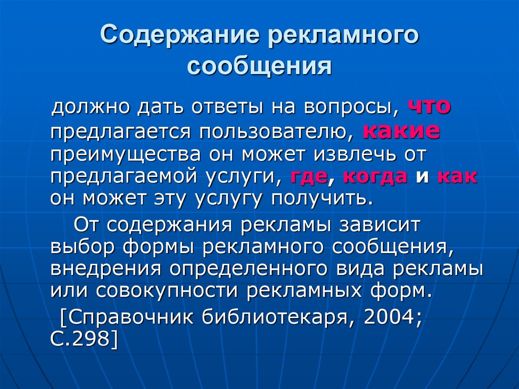 Содержание рекламногосообщения