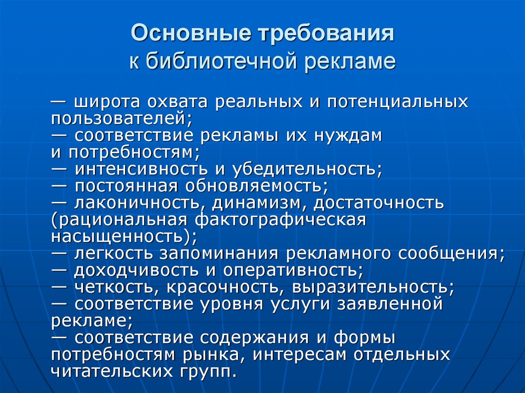 Основные требованияк библиотечной рекламе