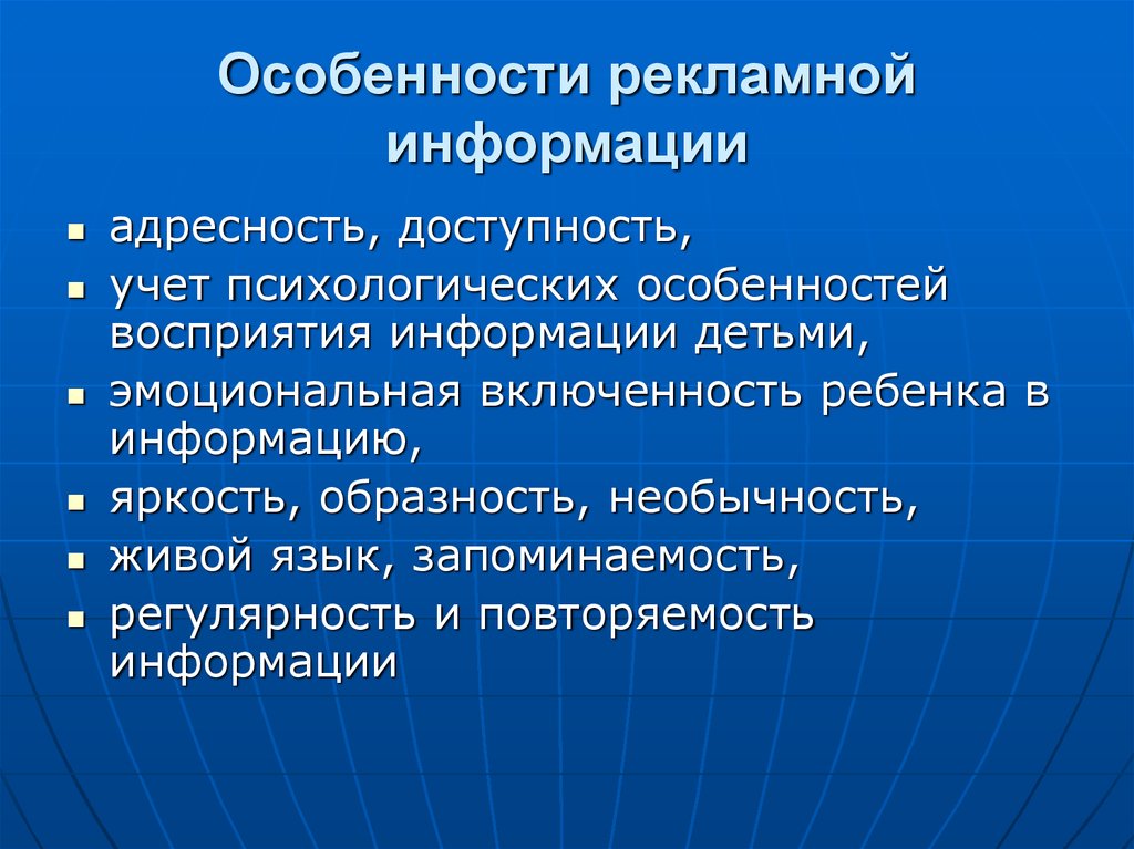 Особенности рекламнойинформации