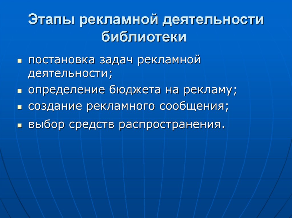 Этапы рекламной деятельностибиблиотеки