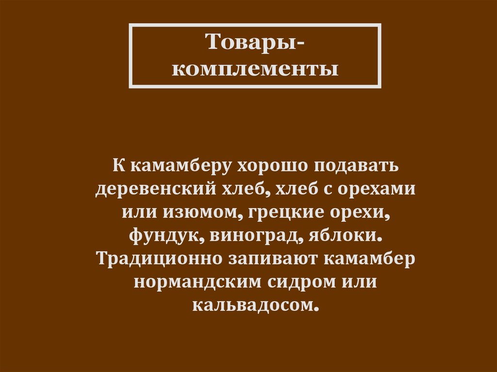 ТоварыкомплементыК камамберу хорошо подавать