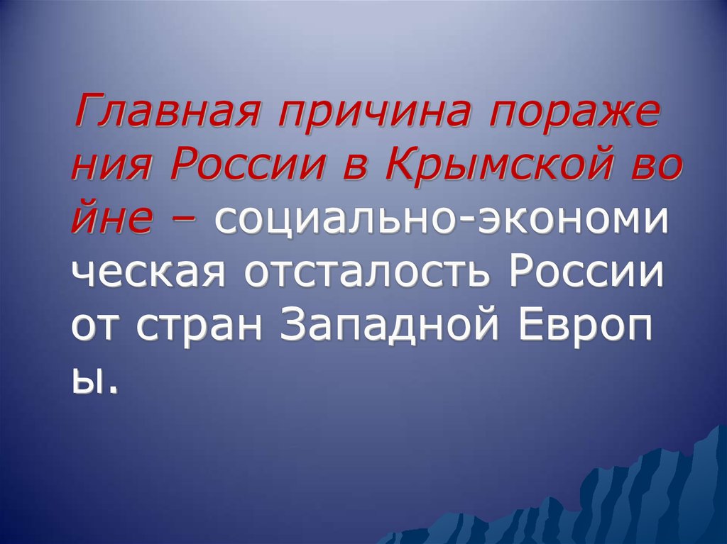 Главная причина поражения России в Крымской во