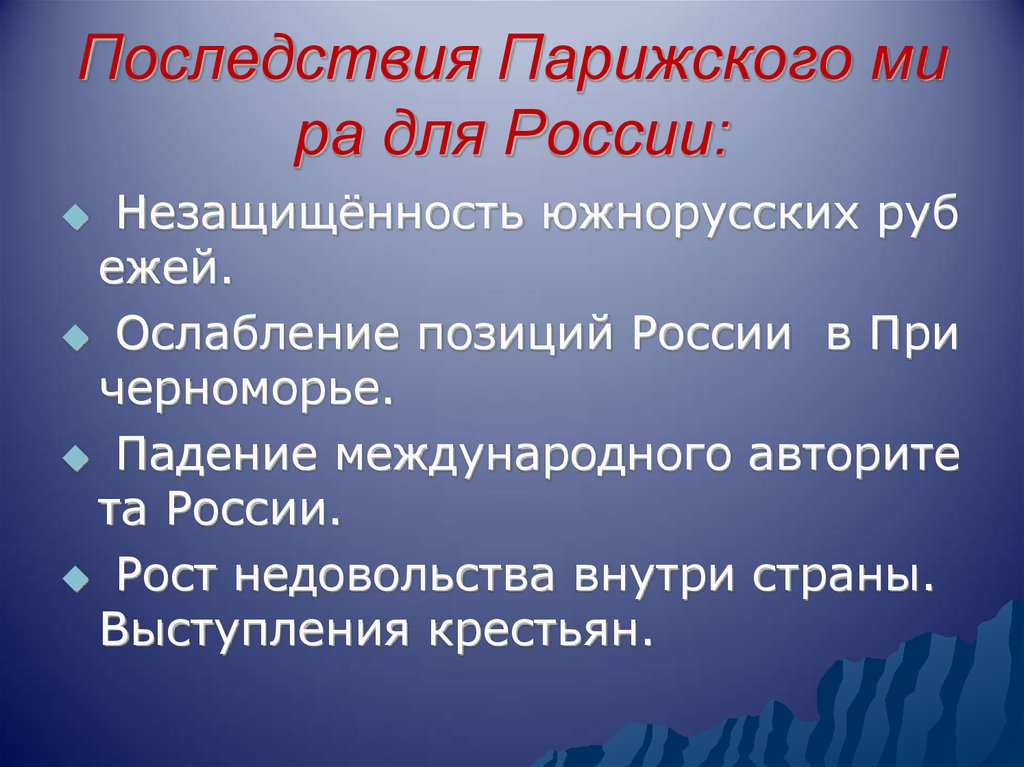 Последствия Парижского мира для России: