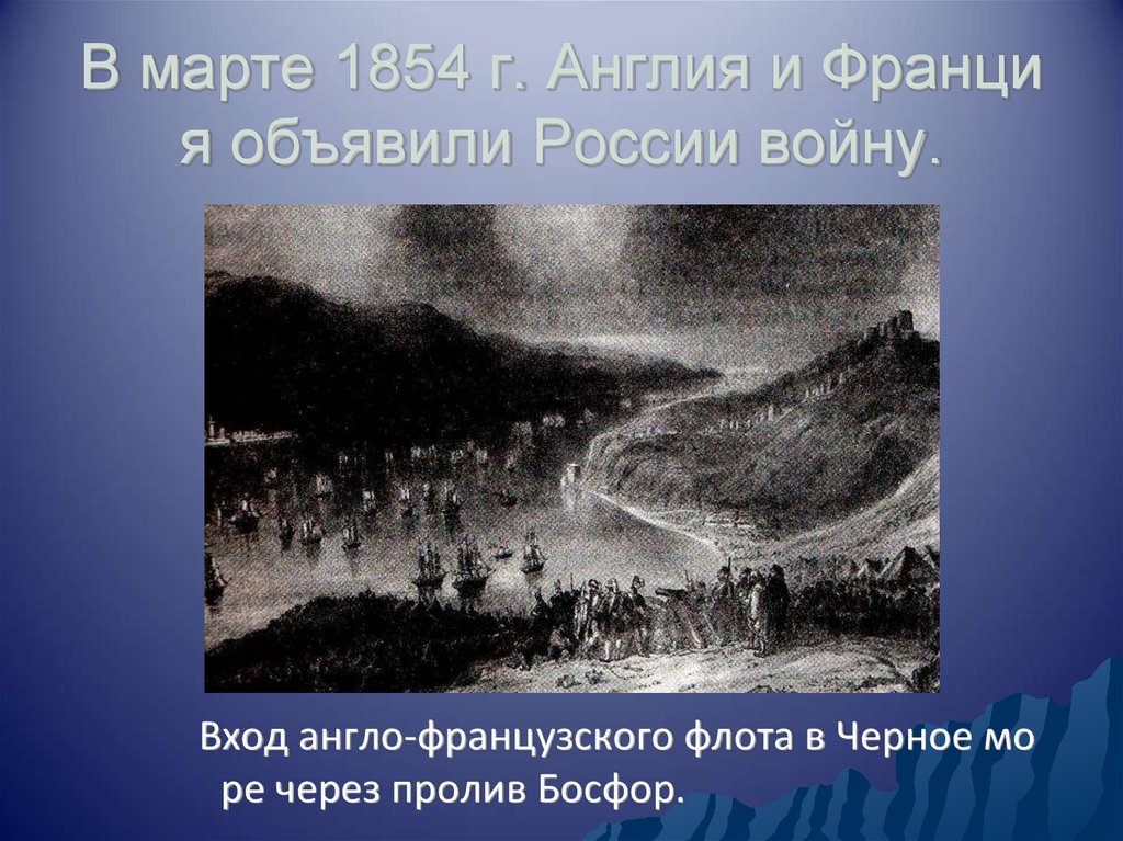 В марте 1854 г. Англия и Франция объявили России войну.