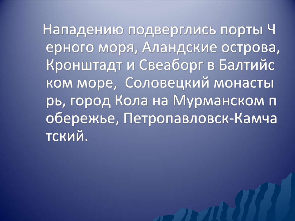 Нападению подверглись порты Черного моря, Аландские острова,