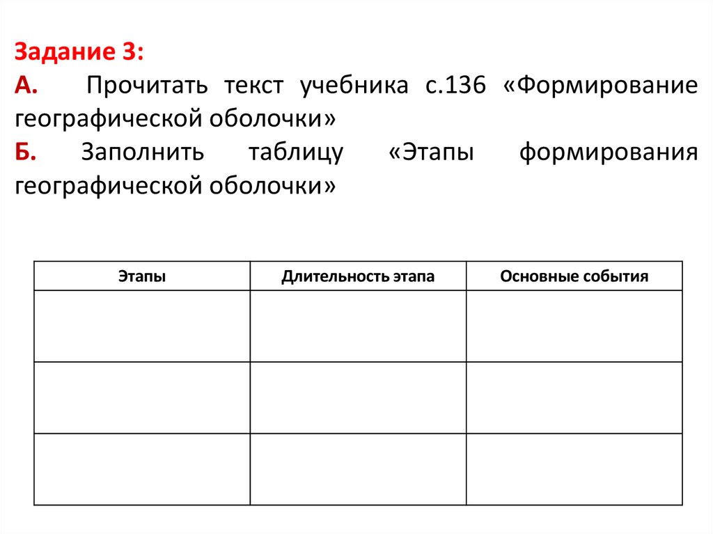 Прочитать текст учебника с.136«Что такое географическая оболочка»