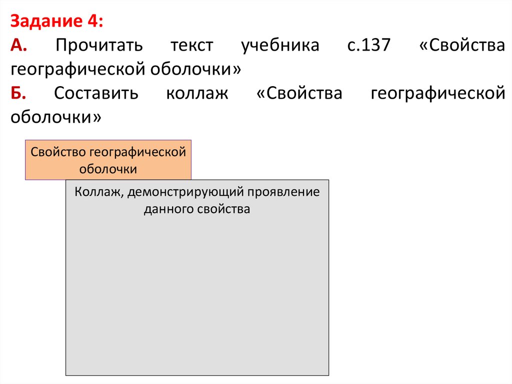 Б. Составить коллаж «Свойства географической