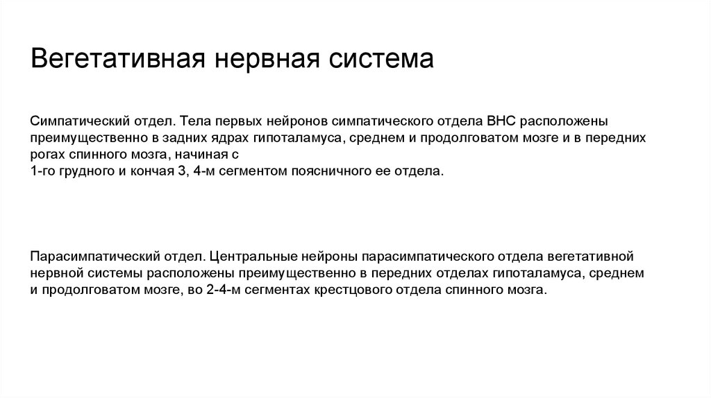 Парасимпатический отдел. Центральные нейроны парасимпатического отдела вегетативной