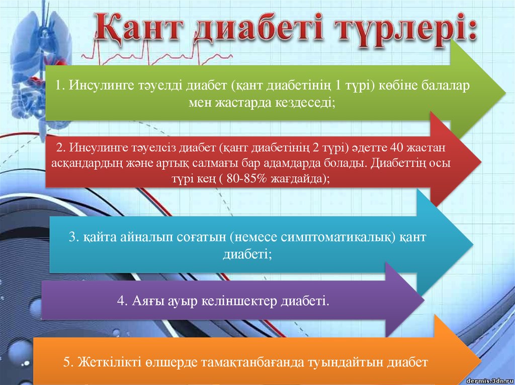 1. Инсулинге тәуелді диабет (қант диабетінің 1 түрі) көбіне балалармен жастарда кездеседі;