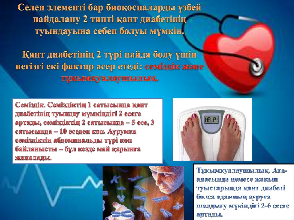 2. Инсулинге тәуелсіз диабет (қант диабетінің 2 түрі) әдетте 40 жастан