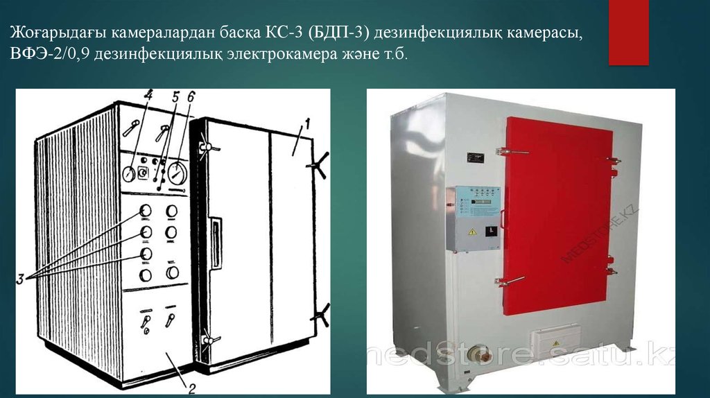 Жоғарыдағы камералардан басқа КС-3 (БДП-3) дезинфекциялық камерасы,ВФЭ-2/0,9 дезинфекциялық электрокамера және т.б.