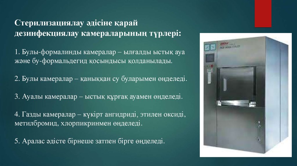 Стерилизациялау әдісіне қарайдезинфекциялау камераларының түрлері: