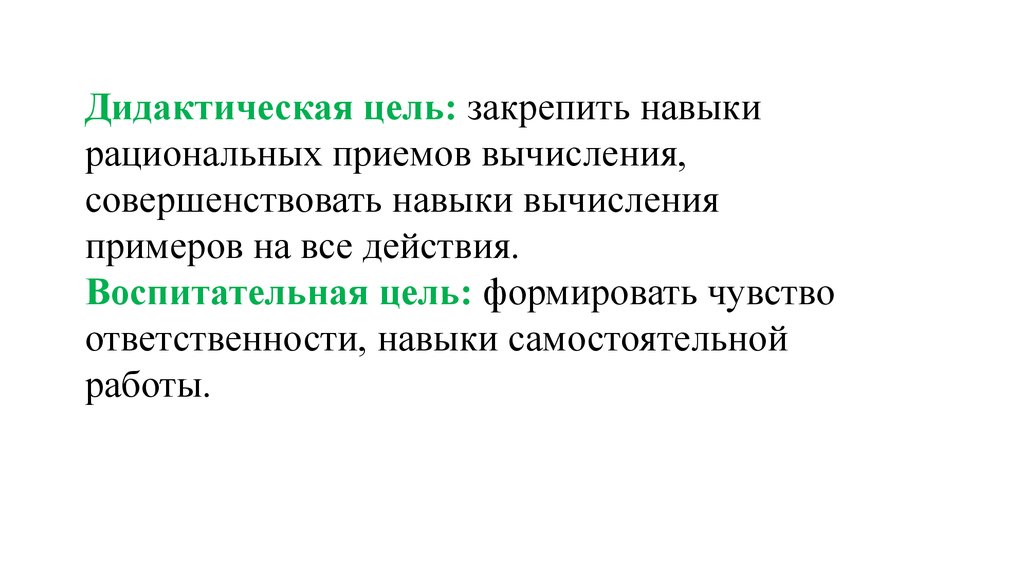 Дидактическая цель: закрепить навыкирациональных приемов вычисления,