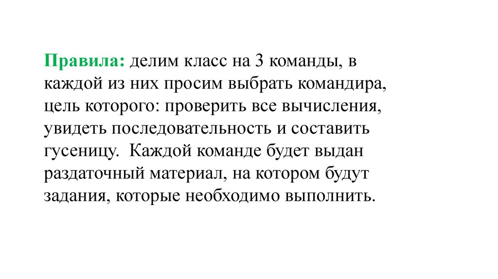 Правила: делим класс на 3 команды, вкаждой из них просим выбрать командира,