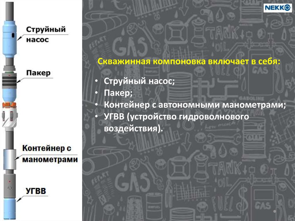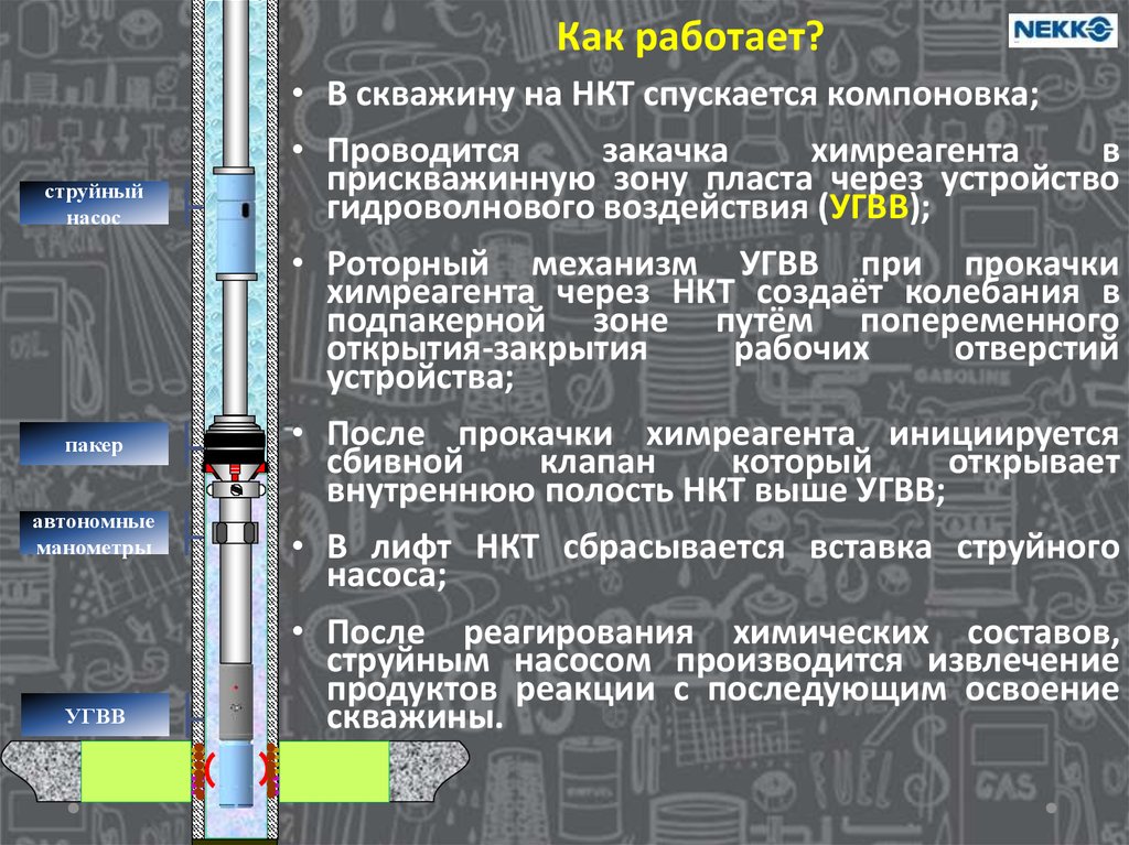 Как работает?• В скважину на НКТ спускается компоновка;