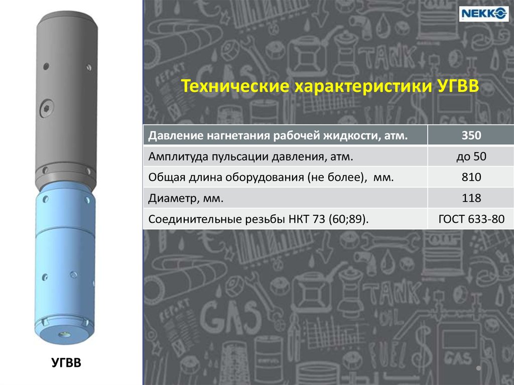 Технические характеристики УГВВДавление нагнетания рабочей жидкости, атм.