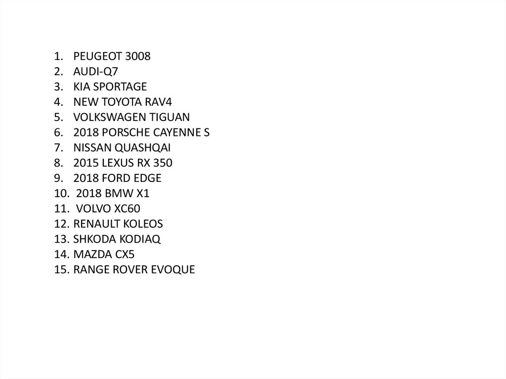 1. PEUGEOT 30082. AUDI-Q7