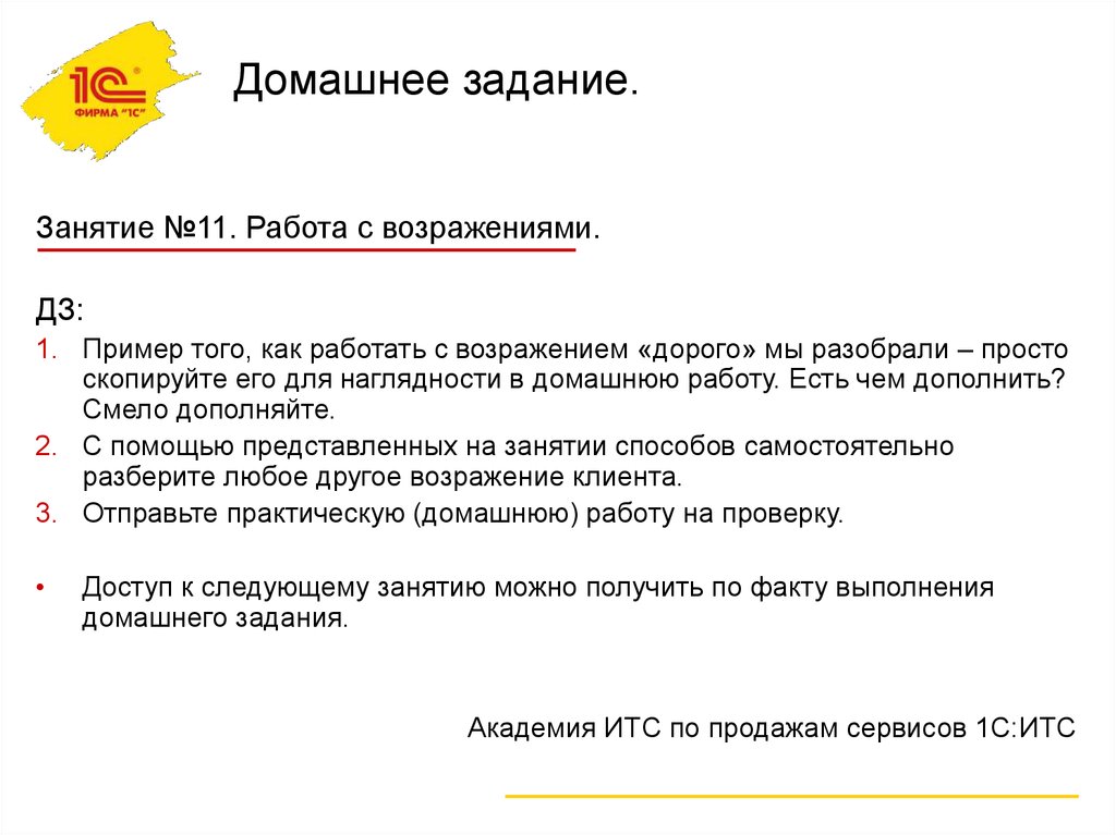Занятие №11. Работа с возражениями.ДЗ: