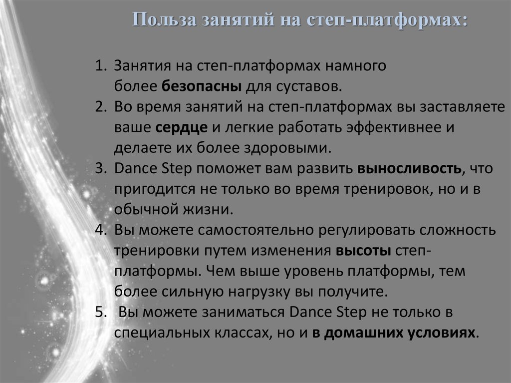 Польза занятий на степ-платформах:1. Занятия на степ-платформах намного
