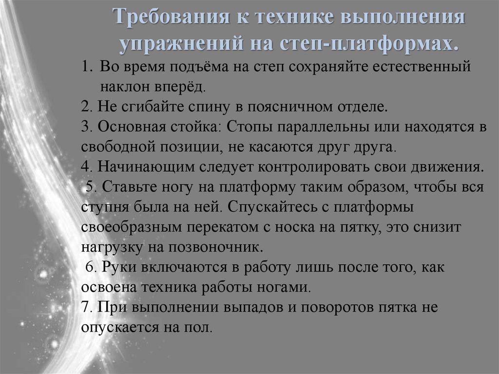 Рассказать о пользе и рисках занятий на степ-платформах;
