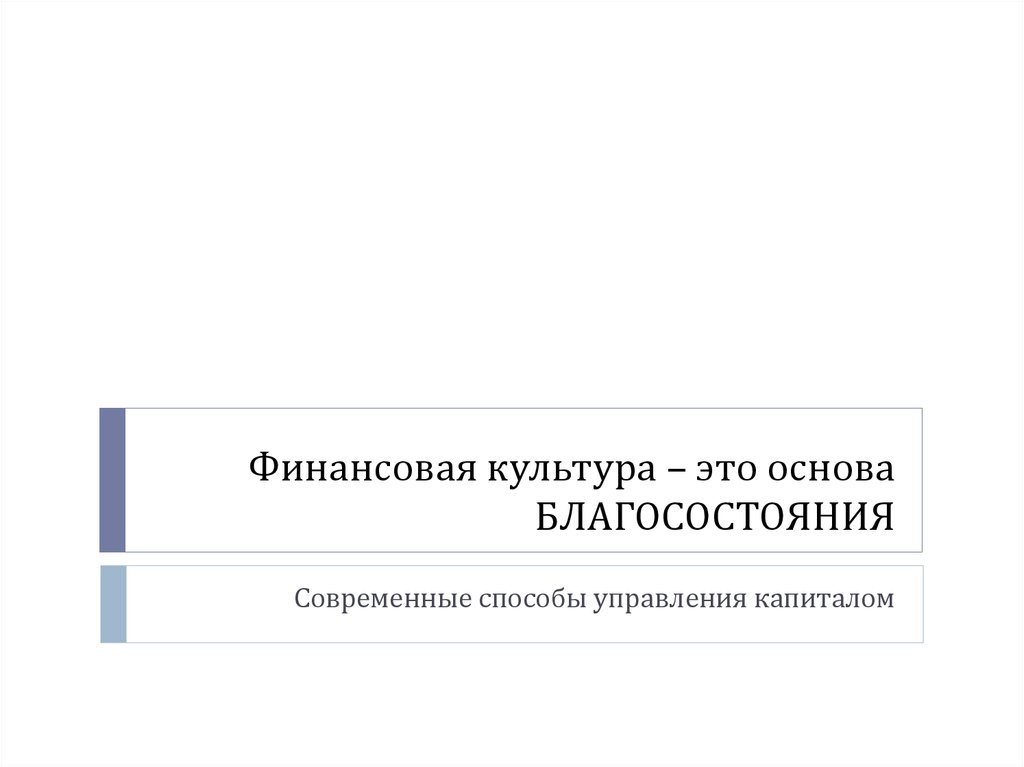 1. Финансовая культура – это основа БЛАГОСОСТОЯНИЯ