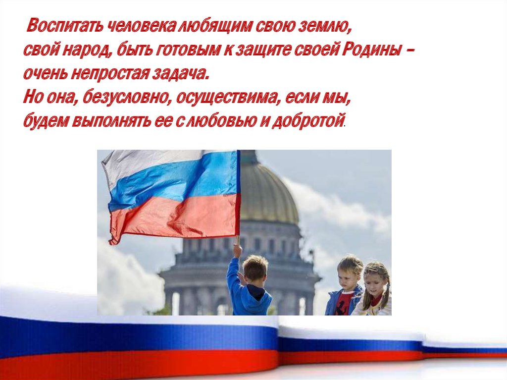 Воспитать человека любящим свою землю,свой народ, быть готовым к защите своей Родины –