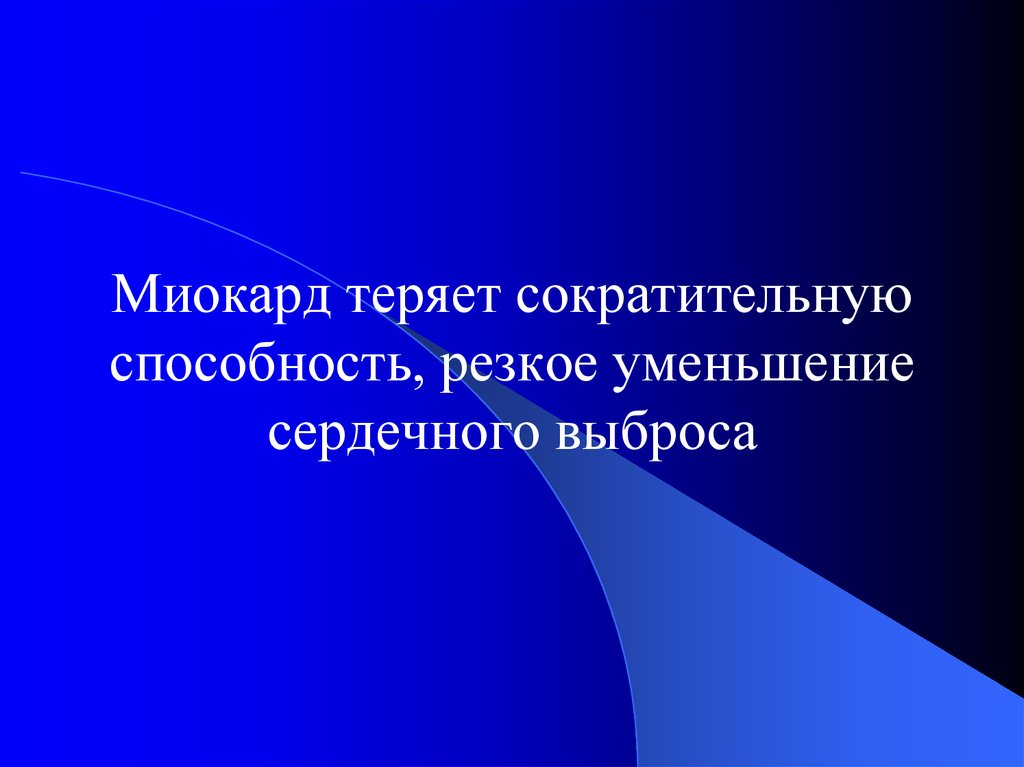 Миокард теряет сократительнуюспособность, резкое уменьшение