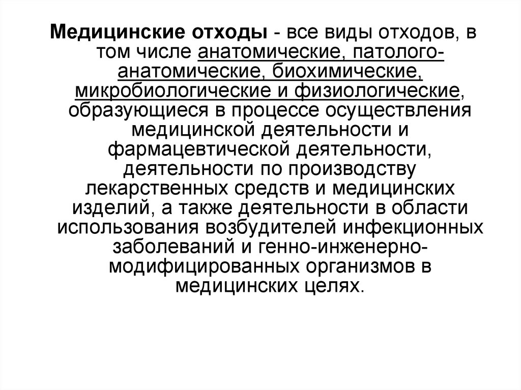 Медицинские отходы - все виды отходов, втом числе анатомические, патологоанатомические, биохимические,