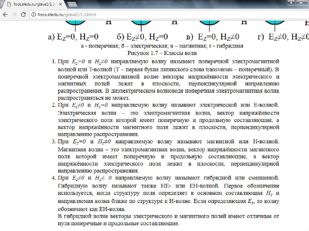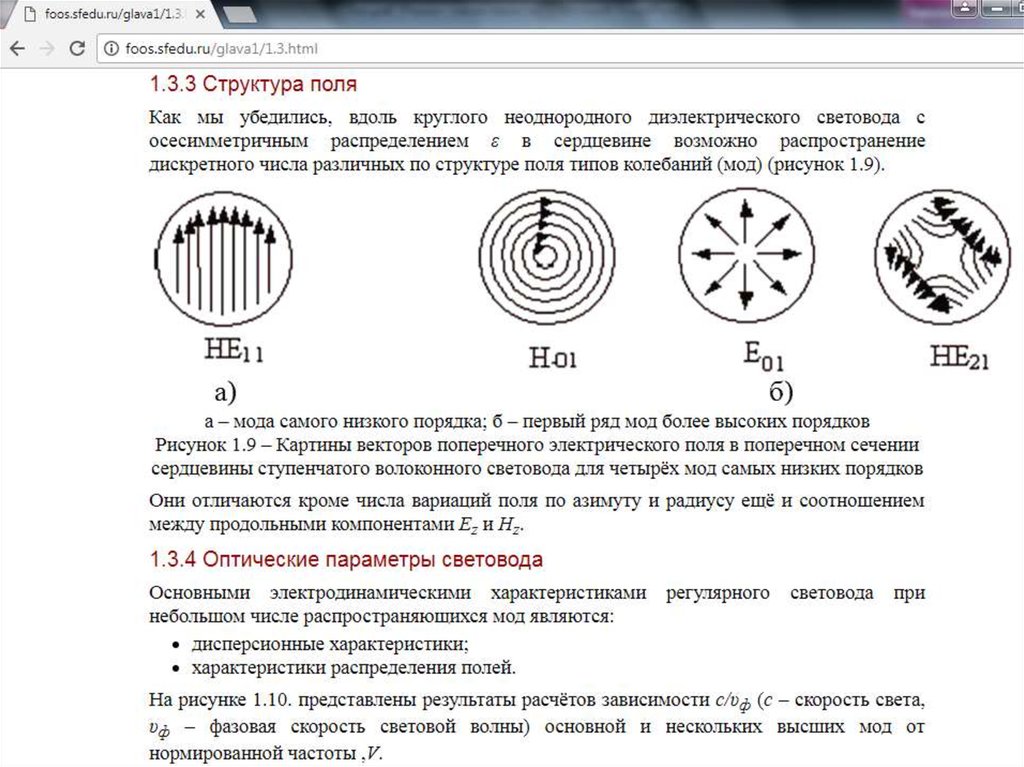 Свойства световода, основанные на законах электромагнитного поля